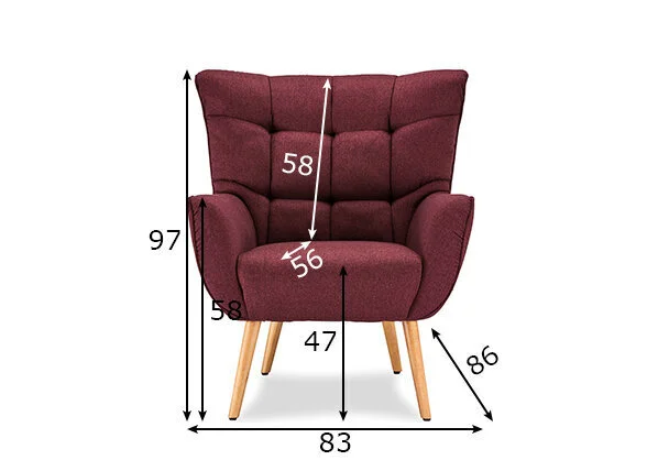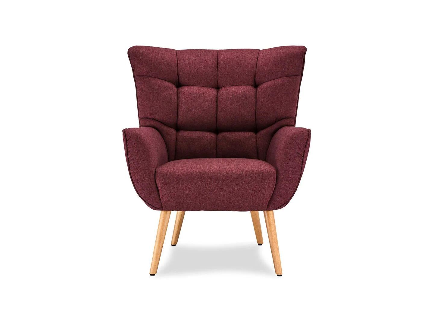 Tyylikäs punainen nojatuoli verhoiltu kankaalla (100 % polyesteriä).