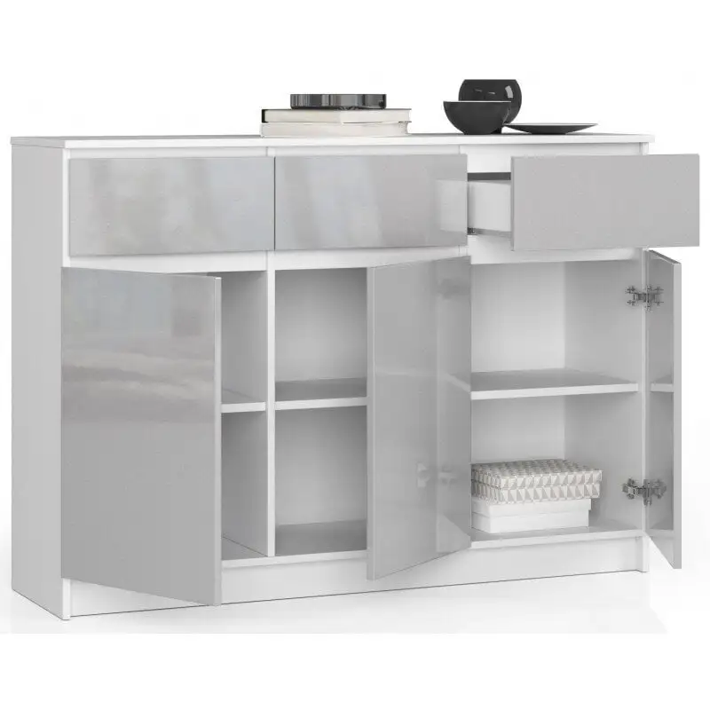 - Tyylikkäässä senkissä on 3 vetolaatikko ja 3 ovea, joiden takana on tilavat hyllyt;