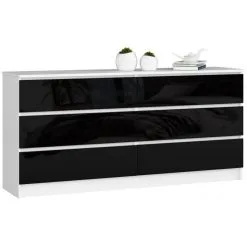 Levyn yläkerros peitetään usein erityisellä kalvolla, joka varmistaa huonekalun lujuuden. Viimeisimpien tuotantoteknologioiden avulla nämä laatat voivat olla kosteudenkestäviä, minkä vuoksi nämä materiaalit eroavat monipuolisuudestaan ja sopivat mihin tahansa huoneeseen. NORE 1750 -lipasto, valkoinen/musta löytää varmasti paikan kodistasi!