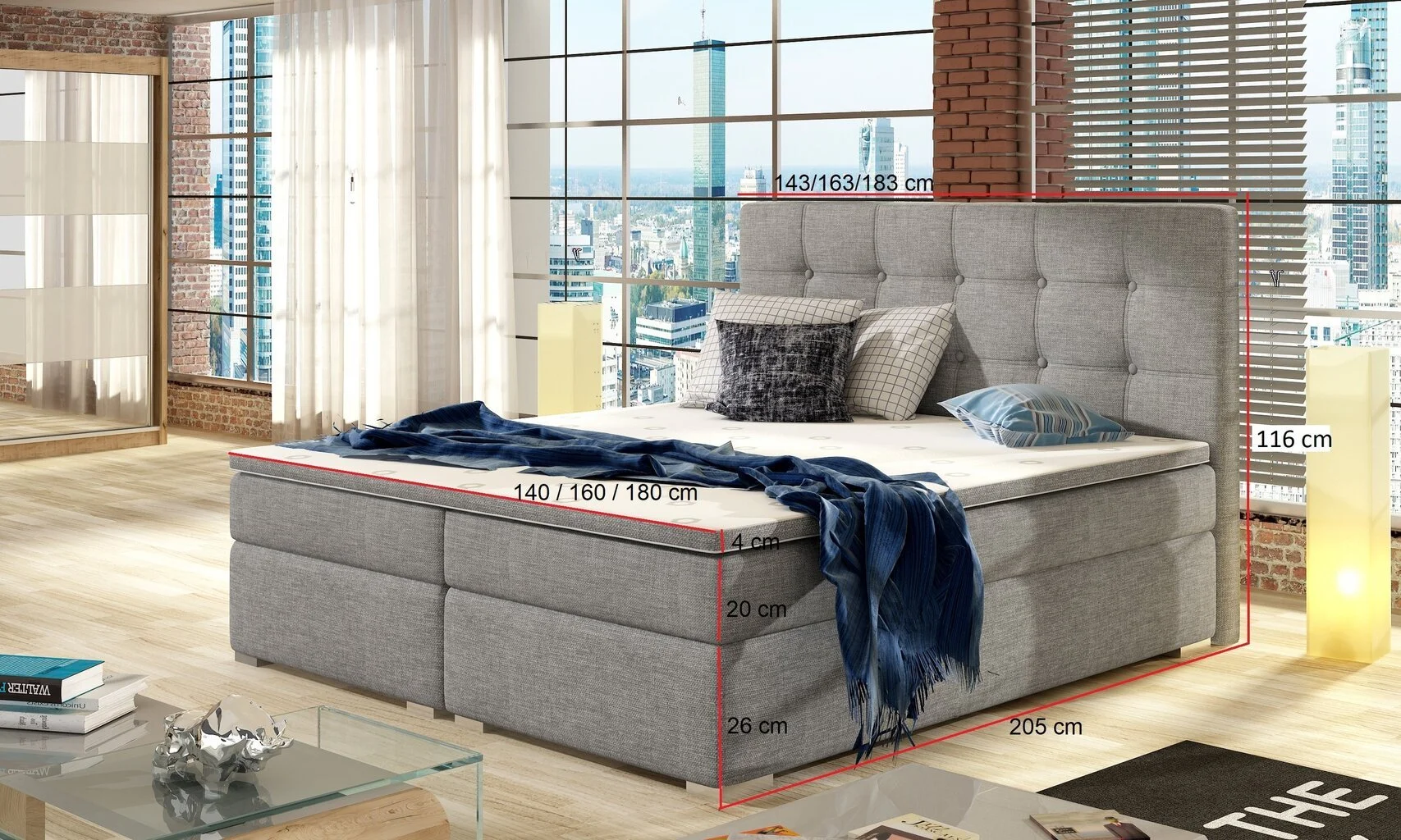 - Tuotteen kokonaismitat: pituus 205 cm, leveys 163 cm, korkeus 116 cm