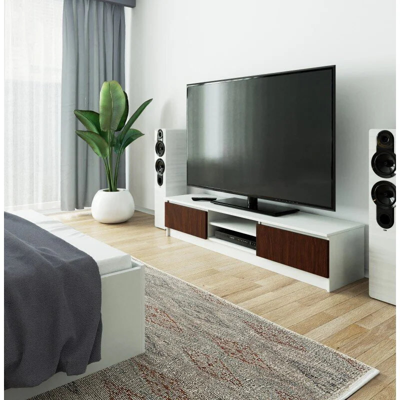 NORE K160 TV-taso, Valkoinen/ruskea -Olohuoneen kalusteet myymälä nore k160 tv taso valkoinenruskea b7982 netistai reference