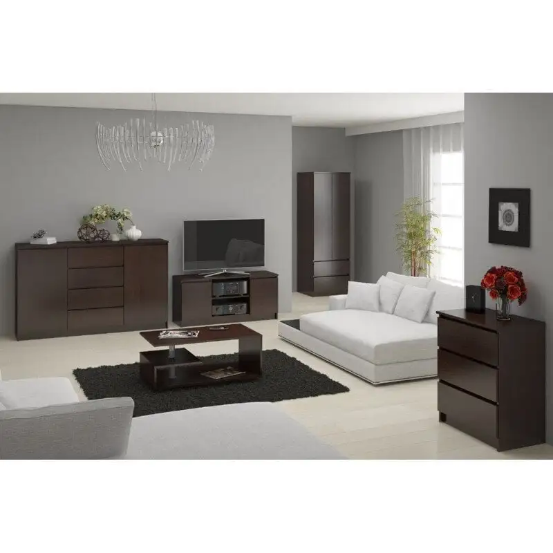 Levyn yläkerros peitetään usein erityisellä kalvolla, joka varmistaa huonekalun lujuuden. Viimeisimpien tuotantoteknologioiden avulla nämä laatat voivat olla kosteudenkestäviä, minkä vuoksi nämä materiaalit eroavat monipuolisuudestaan ja sopivat mihin tahansa huoneeseen. NORE lipasto K120, tammen väri löytää varmasti paikan kodistasi!