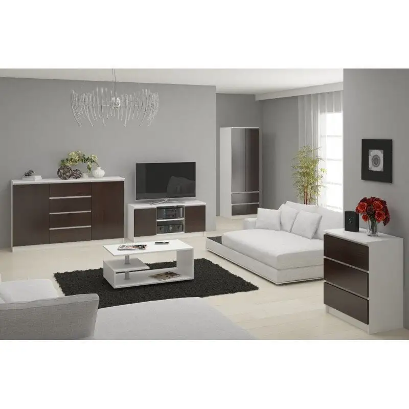 Levyn yläkerros peitetään usein erityisellä kalvolla, joka varmistaa huonekalun lujuuden. Viimeisimpien tuotantoteknologioiden avulla nämä laatat voivat olla kosteudenkestäviä, minkä vuoksi nämä materiaalit eroavat monipuolisuudestaan ja sopivat mihin tahansa huoneeseen. Lipasto NORE K60 4 laatikolla, ruskea/valkoinen löytää varmasti paikan kodistasi!