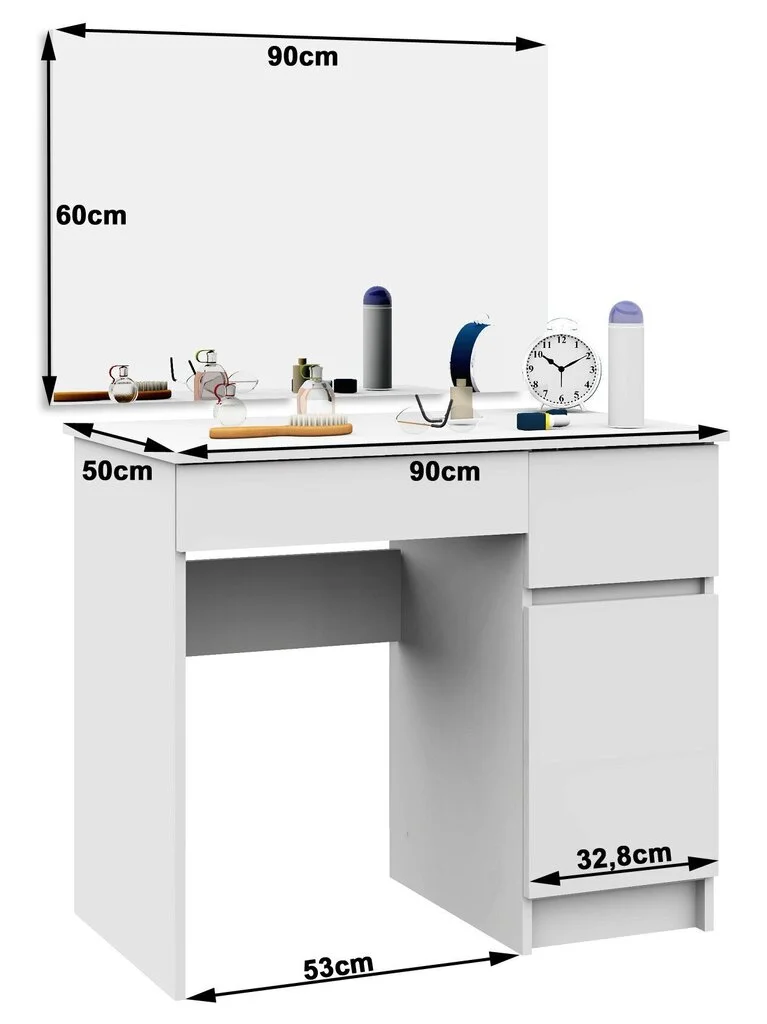 Kompakti pukeutumispöytä naisille, jotka haluavat meikata nopeasti joka aamu. Sisustusratkaisu makuuhuoneeseen ja muualle. Peilipöydän mitat sopivat erinomaisesti myös kauneushoitoloihin.