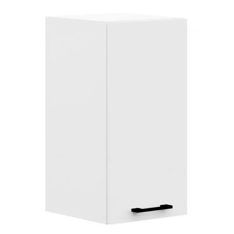 - Tyylikkään näköinen keittiön seinäkaappi, jossa on yksi ovi.
