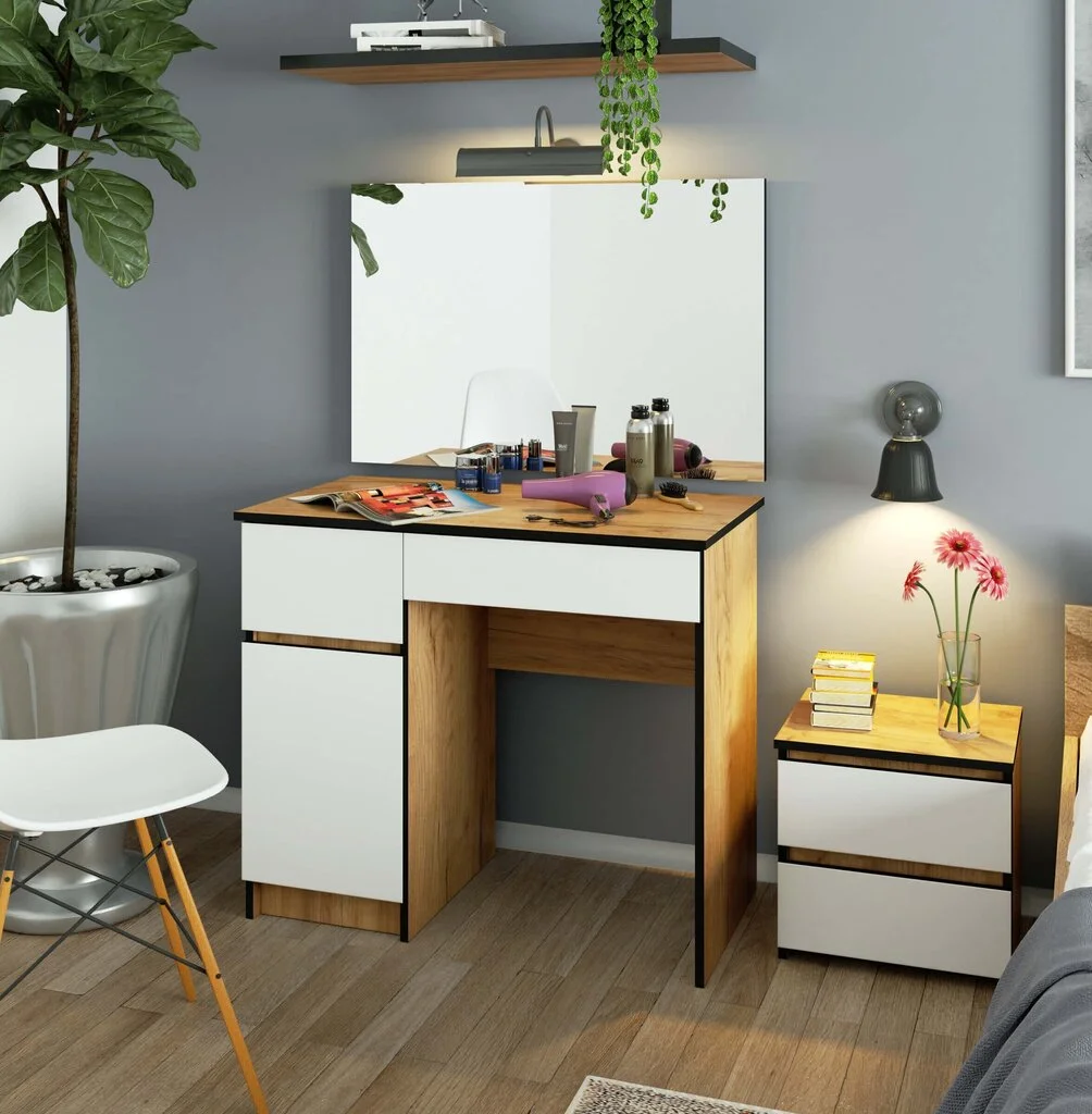 Kompaktit ja käytännölliset huonekalut on helppo nostaa ja siirtää. Joskus se voidaan koota, mikä vapauttaa vielä enemmän tilaa. Tästä syystä on mahdollista luoda minimalistinen ja ergonominen ympäristö, jossa on tilaa muille suunnitteluratkaisuille ja mukavalle käsittelylle. Toisin sanoen Meikkipöytä peilillä 50×60 cm, Artisan-tammen väri sopii helposti luotavaan ympäristöön eikä häiritse viime hetken päätöksiä.