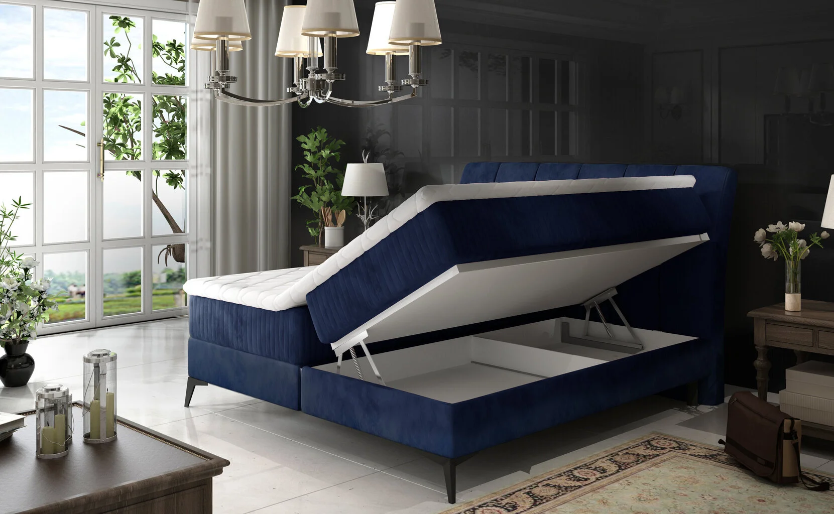 Ainutlaatuinen muotoilu Aderito-sänky, jossa mukava kaareva pää, koristeltu syvällä pystysuoralla tikkauksella ja 2 tilavalla liinavaatelaatikolla mukavan vuodevaatteen takaamiseksi. Kaksi erillistä patjaa varmistavat erinomaisen painon jakautumisen ja mukavuuden unen aikana, koska kumppanisi liikkeet eivät siirry. Tämä erittäin mukava ja käytännöllinen sänky sopii täydellisesti kotisi moderniin sisustukseen.