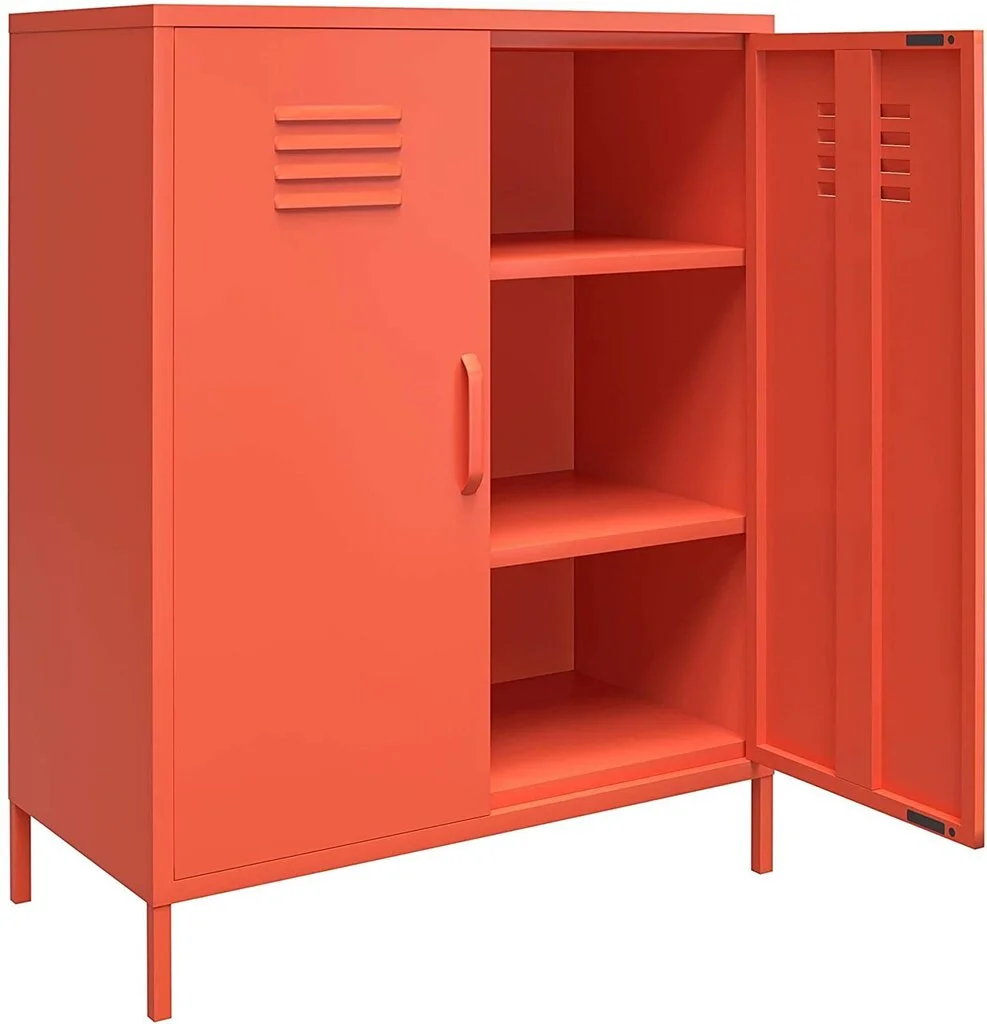 Tee sisustuksesta kodikkaampi Novogratz Cache -kaapilla. Jauhemaalattu metallikaappi on paitsi toimiva ja kaunis, myös erittäin helppo puhdistaa. Kirkkaat värit tuovat kodin sisustukseen odottamatonta vivahdetta, ja kolme tilavaa hyllyä pitävät tavarat siististi paikoillaan.