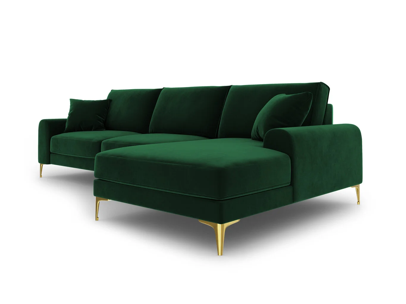 Kaikki nämä modernien huonekalujen ominaisuudet vahvistavat sen tosiasian, että tämän tyylin tuotteet ovat yksinkertaisia ja samalla erittäin yleisiä. Joten ne on helppo sijoittaa kaikenkokoisiin huoneisiin. Pehmeä kulmasohva Mazzini Sofas Madara, veluuri, tummanvihreä/musta pitää niistä, jotka haluavat luoda minimalistisen ja tilavan tilan, jossa on kunnollinen ja raikas luonto.