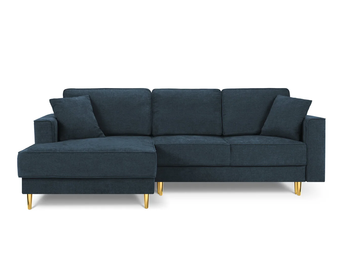 Yksi tämän huonekalun ilmeisimmistä eduista on tilansäästö: niin kauan kuin huonekaluja ei pureta, se vie huomattavasti vähemmän tilaa. Tästä syystä tällä toiminnolla varustetut huonekalut valitsevat useimmiten ne, joiden on laskettava huolellisesti jokainen vapaa tuuma. Pehmeä kulmasohva Micadoni Home Dunas 4S, tummansininen/kulta sopii erinomaisesti myös suurempiin tiloihin: joten siellä on enemmän tilaa muille yksityiskohdille. Useimmissa tämän tyyppisissä huonekaluissa on liinavaatelaatikko sisällä – näin tavaroiden säilytysongelma ratkeaa taas.