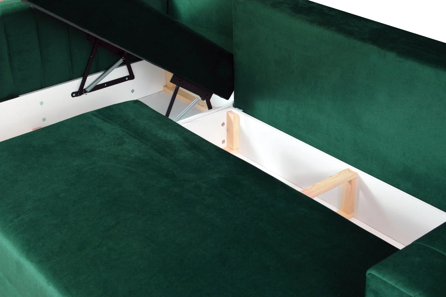 Yksi tämän huonekalun ilmeisimmistä eduista on tilansäästö: niin kauan kuin huonekaluja ei pureta, se vie huomattavasti vähemmän tilaa. Tästä syystä tällä toiminnolla varustetut huonekalut valitsevat useimmiten ne, joiden on laskettava huolellisesti jokainen vapaa tuuma. Pehmeä kulmasohva Vera, ruskea sopii erinomaisesti myös suurempiin tiloihin: joten siellä on enemmän tilaa muille yksityiskohdille. Useimmissa tämän tyyppisissä huonekaluissa on liinavaatelaatikko sisällä – näin tavaroiden säilytysongelma ratkeaa taas.