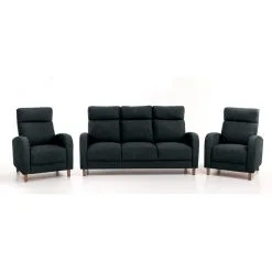 Mitä yksinkertaisempi ja toimivampi huonekalu, sitä paremmin se sopii skandinaaviseen tyyliin. Jos haaveilet puhtaasta, tilavasta ja viihtyisästä ilmapiiristä, Pehmustettu kalustesarja Paris 3+1, , musta Inari 100, jalat – pähkinäpuu on yksi parhaista valinnoista.
