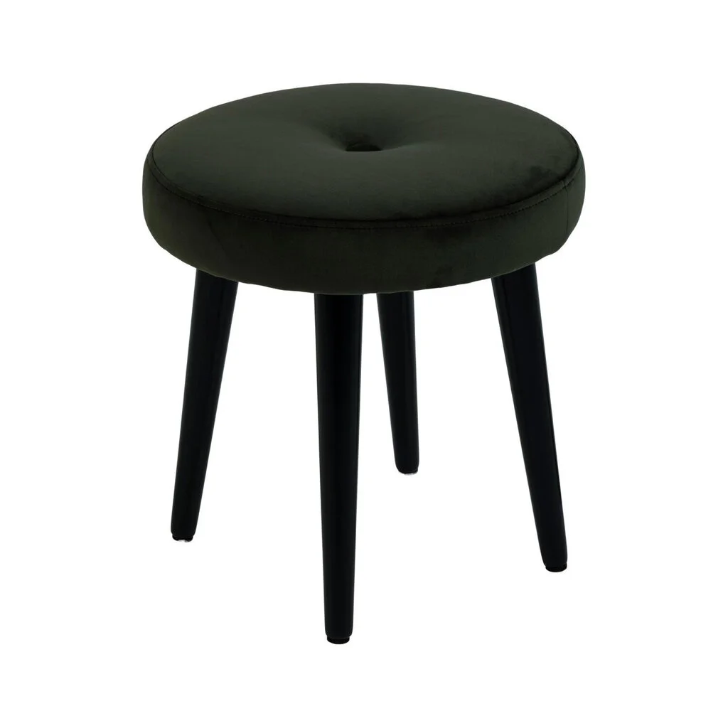 Jakkara FRISCO, D40xH43cm. Peite: VIC-kangas tummanvihreä 74AC, jalat: kumipuu musta värjätty, lakattu