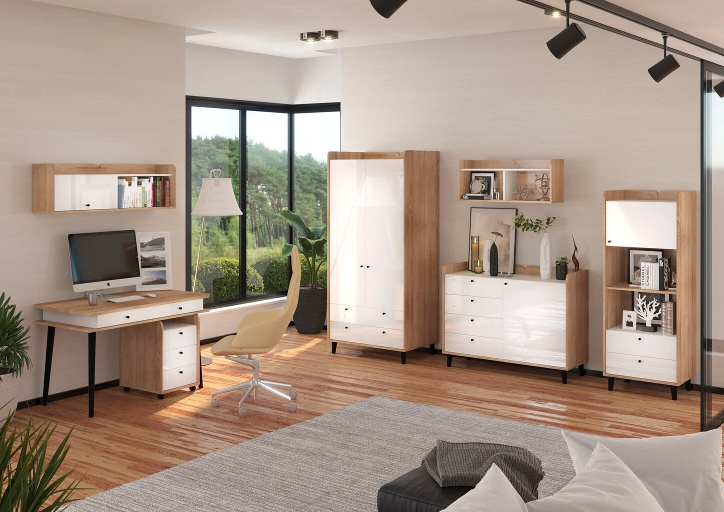- Pöydän väri: tammi (sonoma) / kiiltävä valkoinen, jalat – mustat;