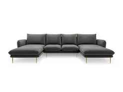 Pehmeä Kulmasohva Cosmopolitan Design Vienna 6S, Tummanharmaa/kultainen