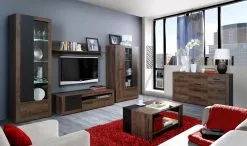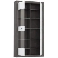 Forte Vitriinikaappi Lennox L, Tummanharmaa/valkoinen Kiiltävä