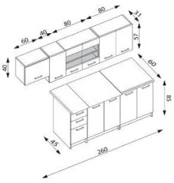 Halmar Keittiö Marija 200 Cm, Kiiltävä Valkoinen/sonoma Tammi