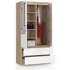 Kaappi NORE S90 Peilillä, Tammen Väri / Valkoinen.