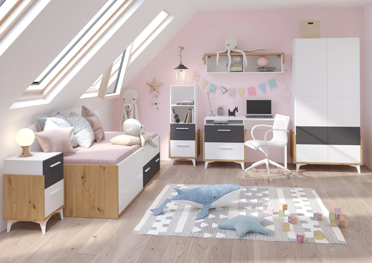 Levyn yläkerros peitetään usein erityisellä kalvolla, joka varmistaa huonekalun lujuuden. Viimeisimpien tuotantoteknologioiden avulla nämä laatat voivat olla kosteudenkestäviä, minkä vuoksi nämä materiaalit eroavat monipuolisuudestaan ja sopivat mihin tahansa huoneeseen. Sänky Meblocross Hey 10, 90×200 cm, valkoinen/tummanharmaa löytää varmasti paikan kodistasi!