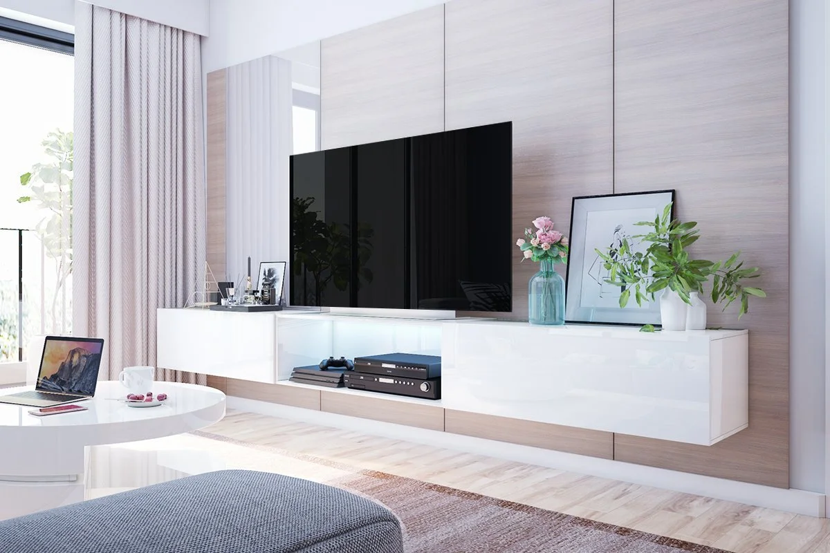 Kaikki nämä modernien huonekalujen ominaisuudet vahvistavat sen tosiasian, että tämän tyylin tuotteet ovat yksinkertaisia ja samalla erittäin yleisiä. Joten ne on helppo sijoittaa kaikenkokoisiin huoneisiin. Seinään kiinnitettävä TV-taso Leo 300 cm, valkoinen. pitää niistä, jotka haluavat luoda minimalistisen ja tilavan tilan, jossa on kunnollinen ja raikas luonto.