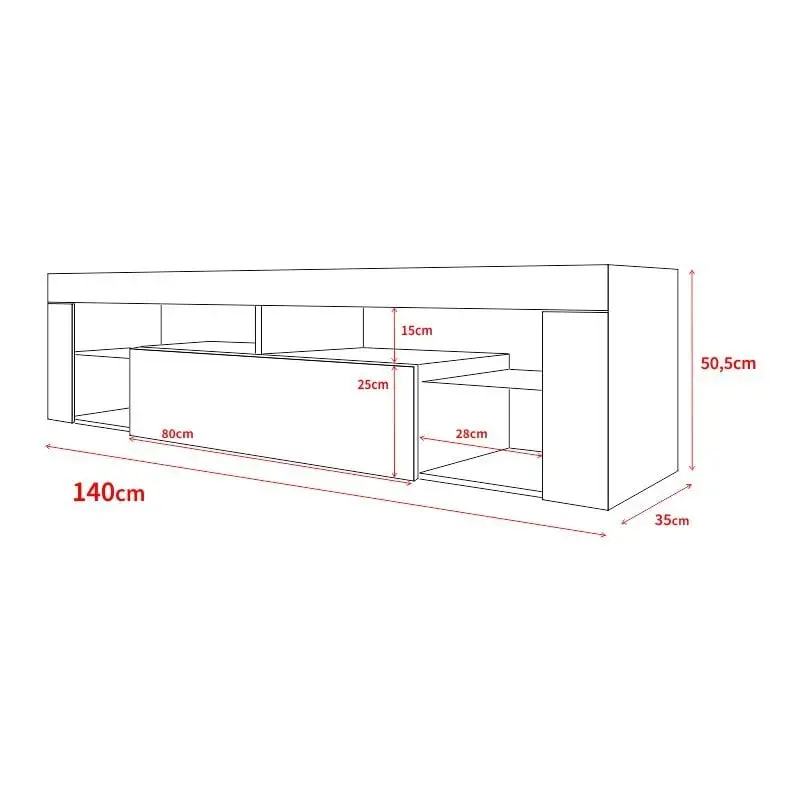 Mitat: korkeus – 50,5 cm, pituus – 140 cm, syvyys – 35 cm.