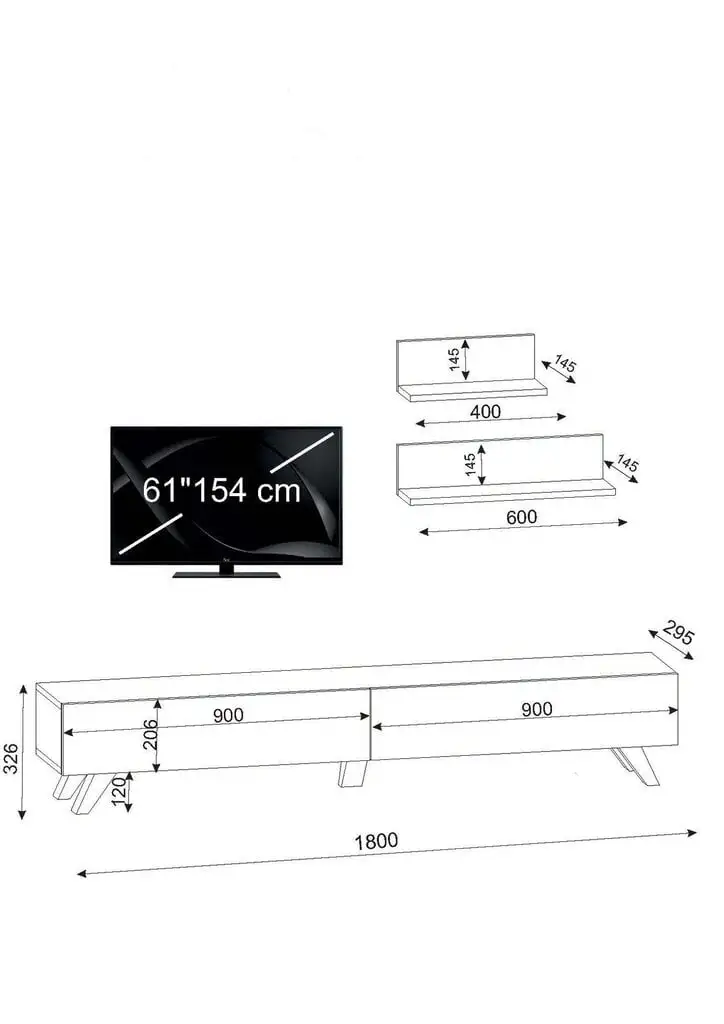 - Setti sisältää: 1 TV-pöytä, 2 seinähyllyä;