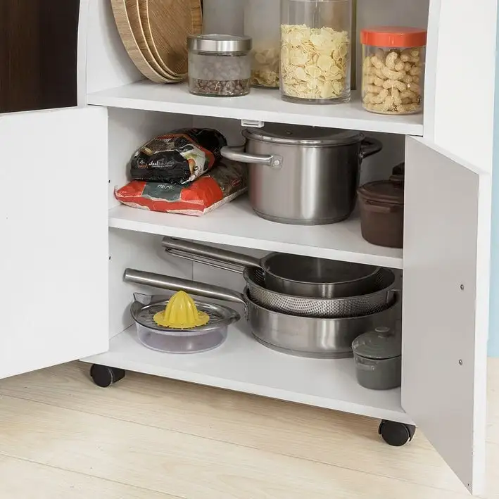 Kompaktit ja käytännölliset huonekalut on helppo nostaa ja siirtää. Joskus se voidaan koota, mikä vapauttaa vielä enemmän tilaa. Tästä syystä on mahdollista luoda minimalistinen ja ergonominen ympäristö, jossa on tilaa muille suunnitteluratkaisuille ja mukavalle käsittelylle. Toisin sanoen Valkoinen puinen keittiökaappi pyörillä FRG241-W sopii helposti luotavaan ympäristöön eikä häiritse viime hetken päätöksiä.