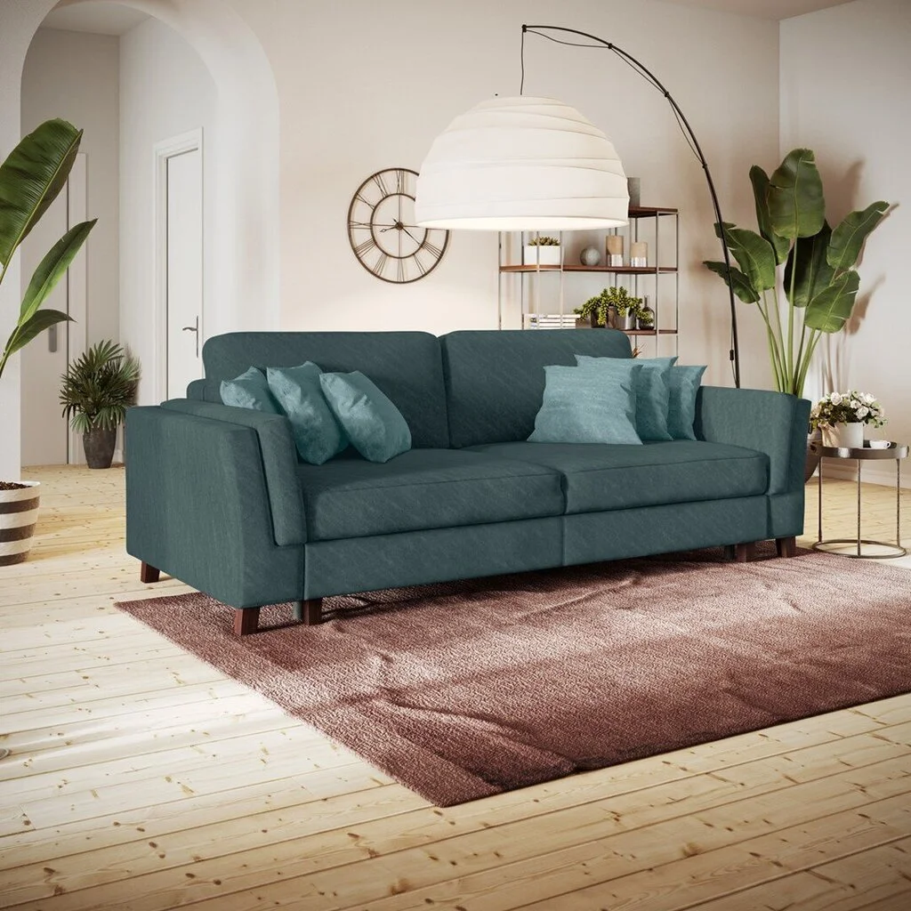 Yksi tämän huonekalun ilmeisimmistä eduista on tilansäästö: niin kauan kuin huonekaluja ei pureta, se vie huomattavasti vähemmän tilaa. Tästä syystä tällä toiminnolla varustetut huonekalut valitsevat useimmiten ne, joiden on laskettava huolellisesti jokainen vapaa tuuma. Sohva Homede Froletti 3S, sininen sopii erinomaisesti myös suurempiin tiloihin: joten siellä on enemmän tilaa muille yksityiskohdille. Useimmissa tämän tyyppisissä huonekaluissa on liinavaatelaatikko sisällä – näin tavaroiden säilytysongelma ratkeaa taas.