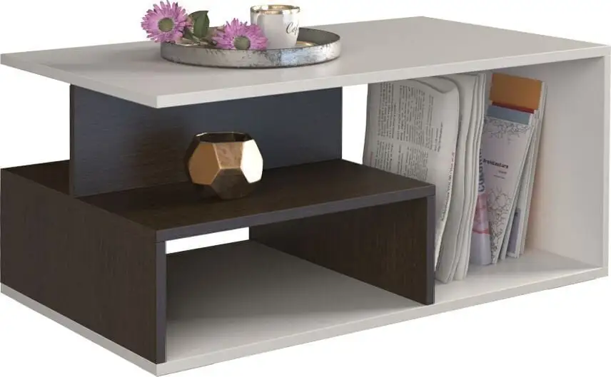 Levyn yläkerros peitetään usein erityisellä kalvolla, joka varmistaa huonekalun lujuuden. Viimeisimpien tuotantoteknologioiden avulla nämä laatat voivat olla kosteudenkestäviä, minkä vuoksi nämä materiaalit eroavat monipuolisuudestaan ja sopivat mihin tahansa huoneeseen. Sohvapöytä Prima, valkoinen/tummanruskea löytää varmasti paikan kodistasi!