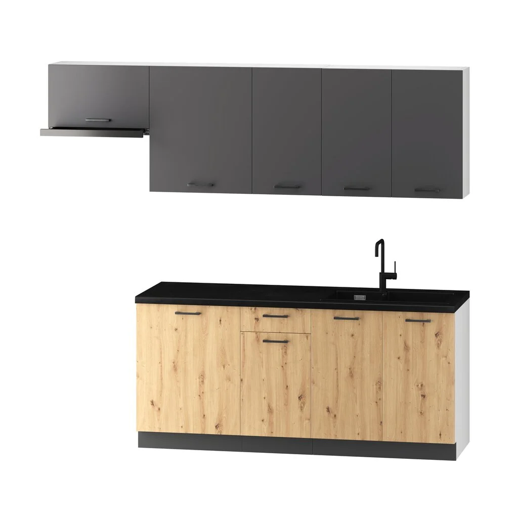 Clara-keittiökalusteet ovat yhdistelmä esteettisiä grafiitin värisiä yläkaappeja ja käsintehtyjä alakaappeja. Clara-keittiöt ovat loistava valinta kaikille, jotka arvostavat universaalia estetiikkaa.