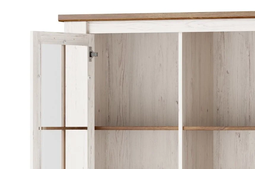 Levyn yläkerros peitetään usein erityisellä kalvolla, joka varmistaa huonekalun lujuuden. Viimeisimpien tuotantoteknologioiden avulla nämä laatat voivat olla kosteudenkestäviä, minkä vuoksi nämä materiaalit eroavat monipuolisuudestaan ja sopivat mihin tahansa huoneeseen. Vitriini Country 12, ruskea/valkoinen. löytää varmasti paikan kodistasi!
