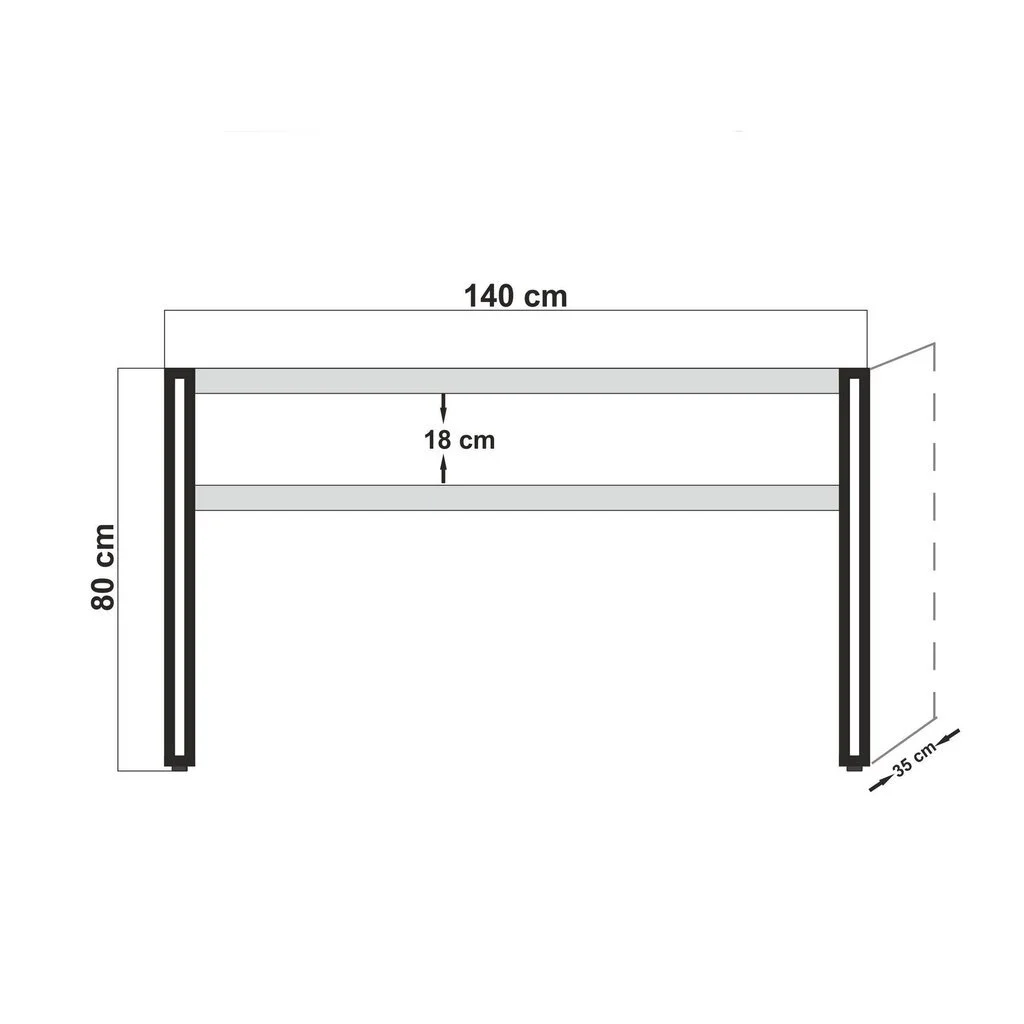 - Pöydän mitat: pituus – 140 cm, leveys – 35 cm, korkeus – 80 cm
