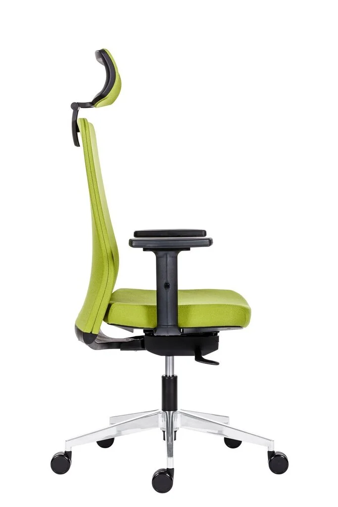 - Mukava toimistotuoli, jossa korkea selkänoja ja päätuki.