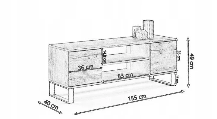 • Mitat: pituus 155 cm, syvyys 40 cm, korkeus 49 cm;
