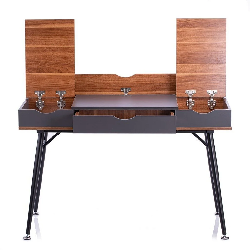 Kaikki nämä modernien huonekalujen ominaisuudet vahvistavat sen tosiasian, että tämän tyylin tuotteet ovat yksinkertaisia ja samalla erittäin yleisiä. Joten ne on helppo sijoittaa kaikenkokoisiin huoneisiin. Työpöytä Faryn 120x60x76 cm, pähklina pitää niistä, jotka haluavat luoda minimalistisen ja tilavan tilan, jossa on kunnollinen ja raikas luonto.