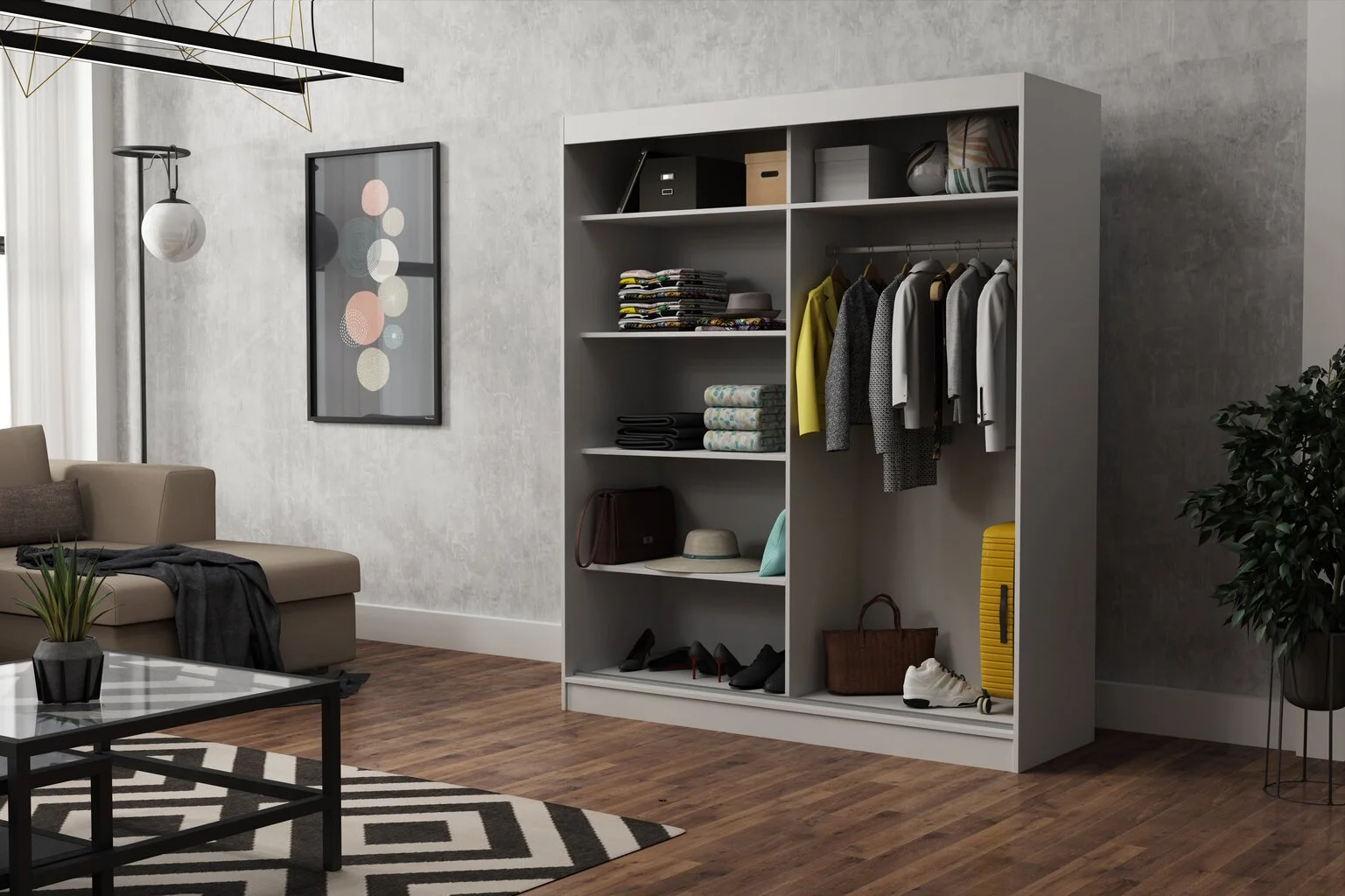 Klassisissa kaksiovisissa kaapeissa on sarana- ja liukuovet, jotka eivät eroa tavallisista sisäovista. Jos sinulla on tilaa saranaovelle, tämä voi olla loistava valinta! Se on suosittu, ajaton valinta. Itse asiassa useimmat ihmiset ajattelevat, että saranoitu ovi on ainoa vaihtoehto, mutta myös liukukaappiovi on mahdollinen. Kaksiovisissa kaapeissa, joissa on saranoidut ovet, tulee olla riittävästi tilaa saranoidun oven avautumista varten. Viimeinen asia, jonka haluat, on, että pystyt avaamaan kaapin oven vain neljänneksen matkasta läheisen seinän tai kiinteän huonekalun takia. Jos sinulla ei ole tarpeeksi tilaa saranoidulle ovelle, niin liukuovi voi olla loistava valinta sinulle! Kaksiovisissa kaapeissa näet myös sen kaiken sisällön heti kaapin avaamisen jälkeen, toisin kuin sivuille liukuovilla varustetut kaapit, mutta liukukaappiovet ”säästävät” huonetilaasi.