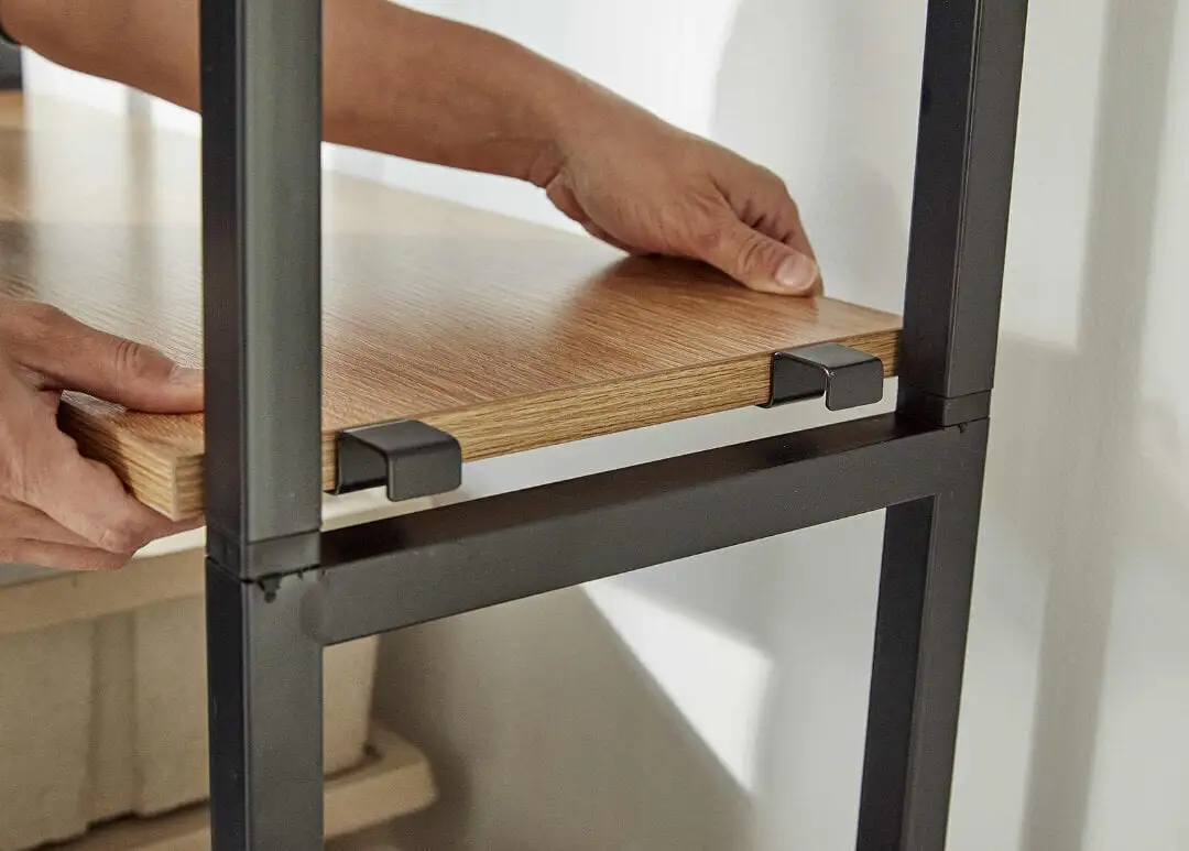 Hyllyn on valmistettu mustasta metallista