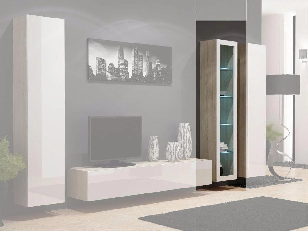 - Vitriinin väri: runko – Sonoma tammi (matta), julkisivu – valkoinen (kiiltävä)