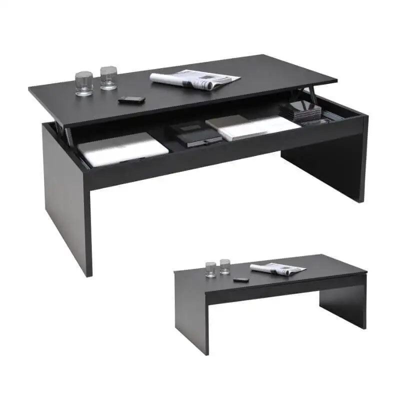 Levyn yläkerros peitetään usein erityisellä kalvolla, joka varmistaa huonekalun lujuuden. Viimeisimpien tuotantoteknologioiden avulla nämä laatat voivat olla kosteudenkestäviä, minkä vuoksi nämä materiaalit eroavat monipuolisuudestaan ja sopivat mihin tahansa huoneeseen. Sohvapöytä Darwin, säädettävä, musta löytää varmasti paikan kodistasi!