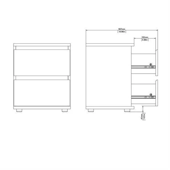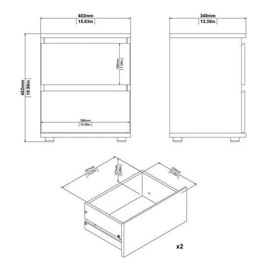 Minimalistinen yöpöytä kahdella laatikolla, johon mahtuu erilaisia tavaroita kirjojen, herätyskellon ja lampun lisäksi. Yhdistämällä sen muihin Nova-kokoelman huonekaluihin voit luoda modernin ja toimivan kodin sisustuksen.